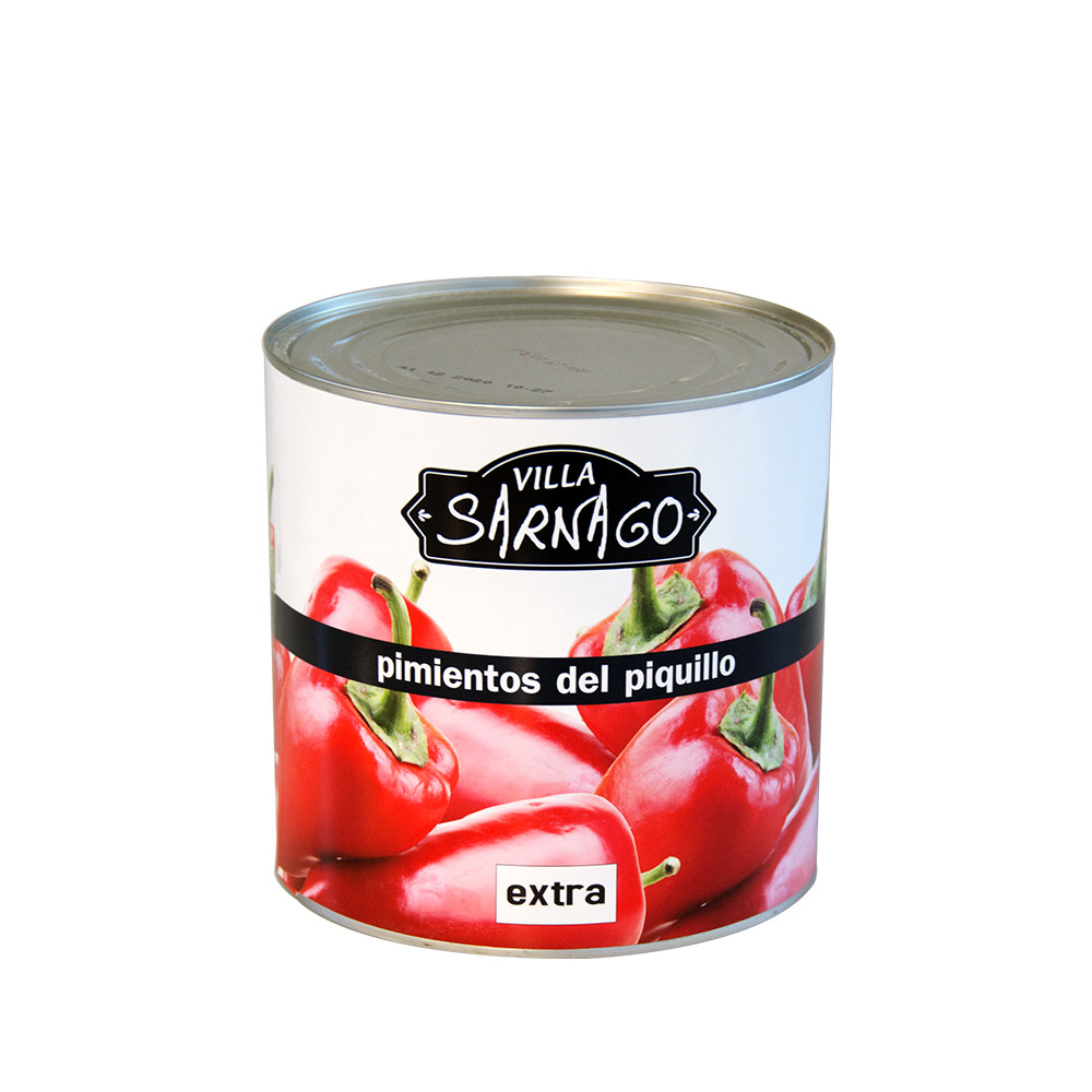Pimientos del piquillo, agua, azúcar, sal, acidulante: ácido cítrico y endurecedor: cloruro de calcio.
